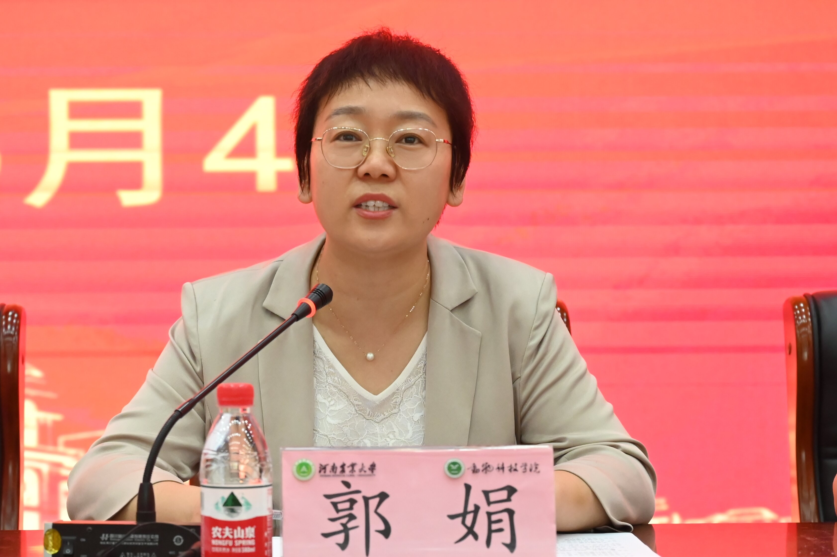 于龙子湖校区繁塔楼大教室一举行新党员入党宣誓暨2024-2025学年学生工作表彰大会,院长李明、院党委副书记郭娟、副院长酒梅菊、副院长孙宇、副院长李转见、农大牧原联合产业研究院副院长蒋瑞瑞、院正科级组织员兼团委书记韩笑及学生代表参会,会议由郭娟主持。