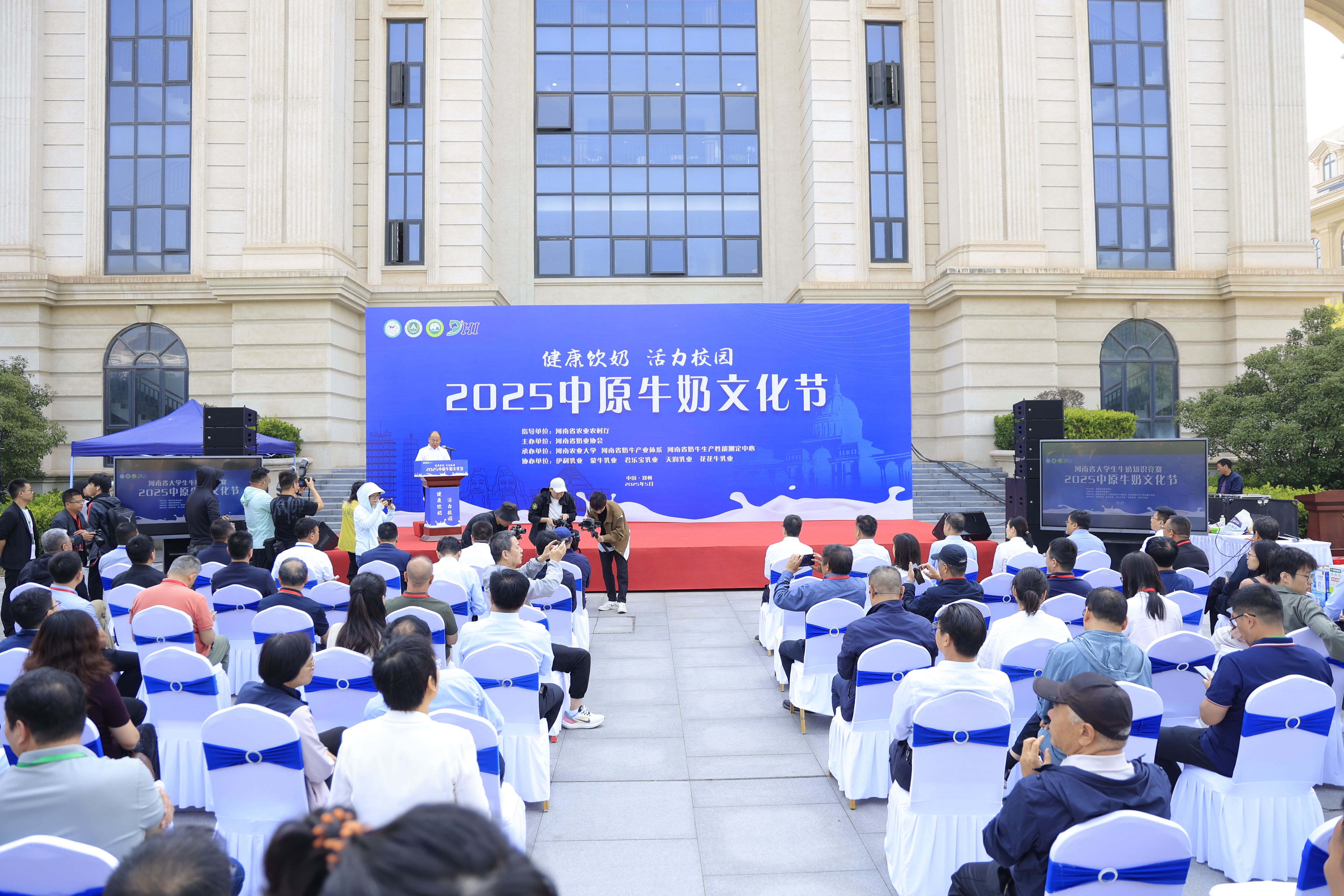 龙子湖校区欢声笑语,热闹非凡。以“健康饮奶,活力校园”为主题的2025中原牛奶文化节盛大开幕,兄弟省(市、区)奶业协会负责人,伊利、蒙牛、花花牛等等知名乳企代表,我校及周边院校师生等千余人齐聚一堂,共赴健康与美味之约,共话奶业高质量发展。