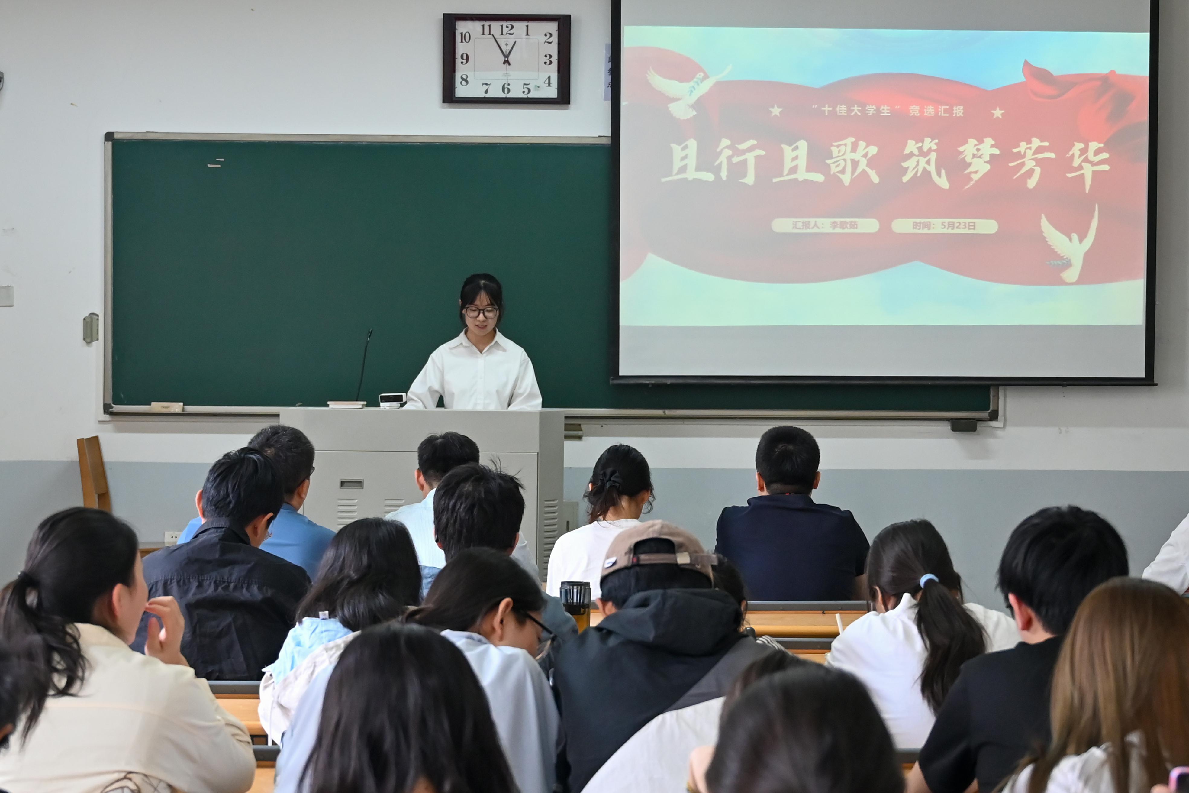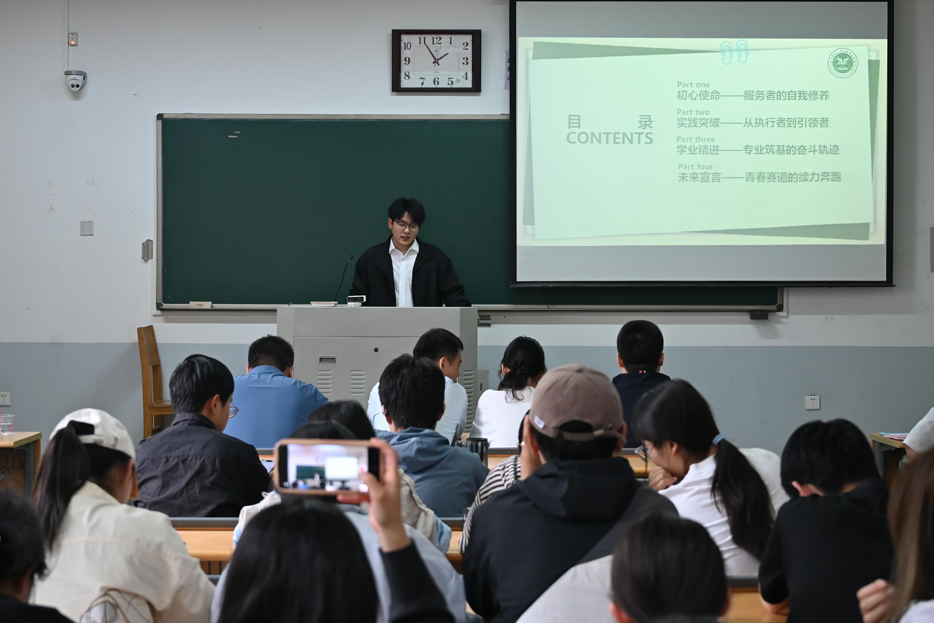经过前期评审,共有16位学生进入现场展示环节。评选现场,16位候选人依次上台进行个人汇报与才艺展示,全方位展现自我风采。他们从思想政治、学业成果、实践工作与志愿服务等方面,展现了充实多元的大学生活,彰显出农大学子昂扬向上、积极奋进、励志成才的精神面貌。最后,秉持“公平、公正、公开”的原则,现场评委老师与各班学生代表进行了现场投票,最终确定捷克论坛
