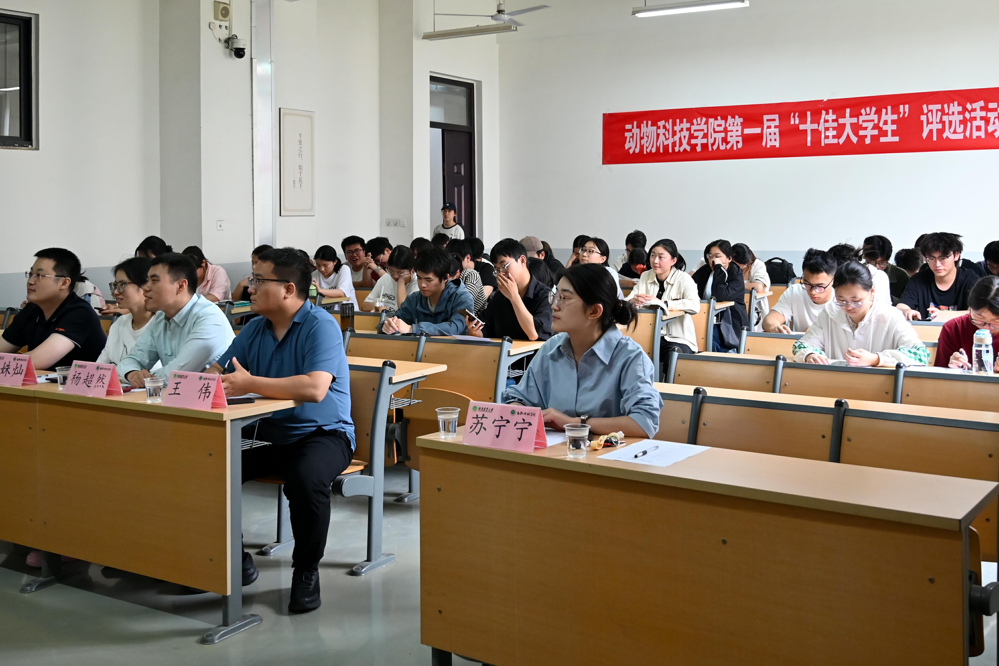 于龙子湖校区繁塔楼D207教室举办第一届“十佳大学生”评选活动。院辅导员赵姝灿、杨超然、郭明,兼职辅导员王伟、苏宁宁以及各班学生代表参会。会议由学生代表朱柯旺主持。