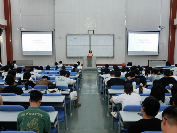 赵姝灿作总结讲话,鼓励同学们主动向优秀考研上岸的毕业生学习,积极借鉴其备考经验与成功方法。同时,她强调考研是一场持久战,坚定信念和毅力在过程中极为重要,勉励大家要有恒心与耐心,坚持不懈方能取得成功。