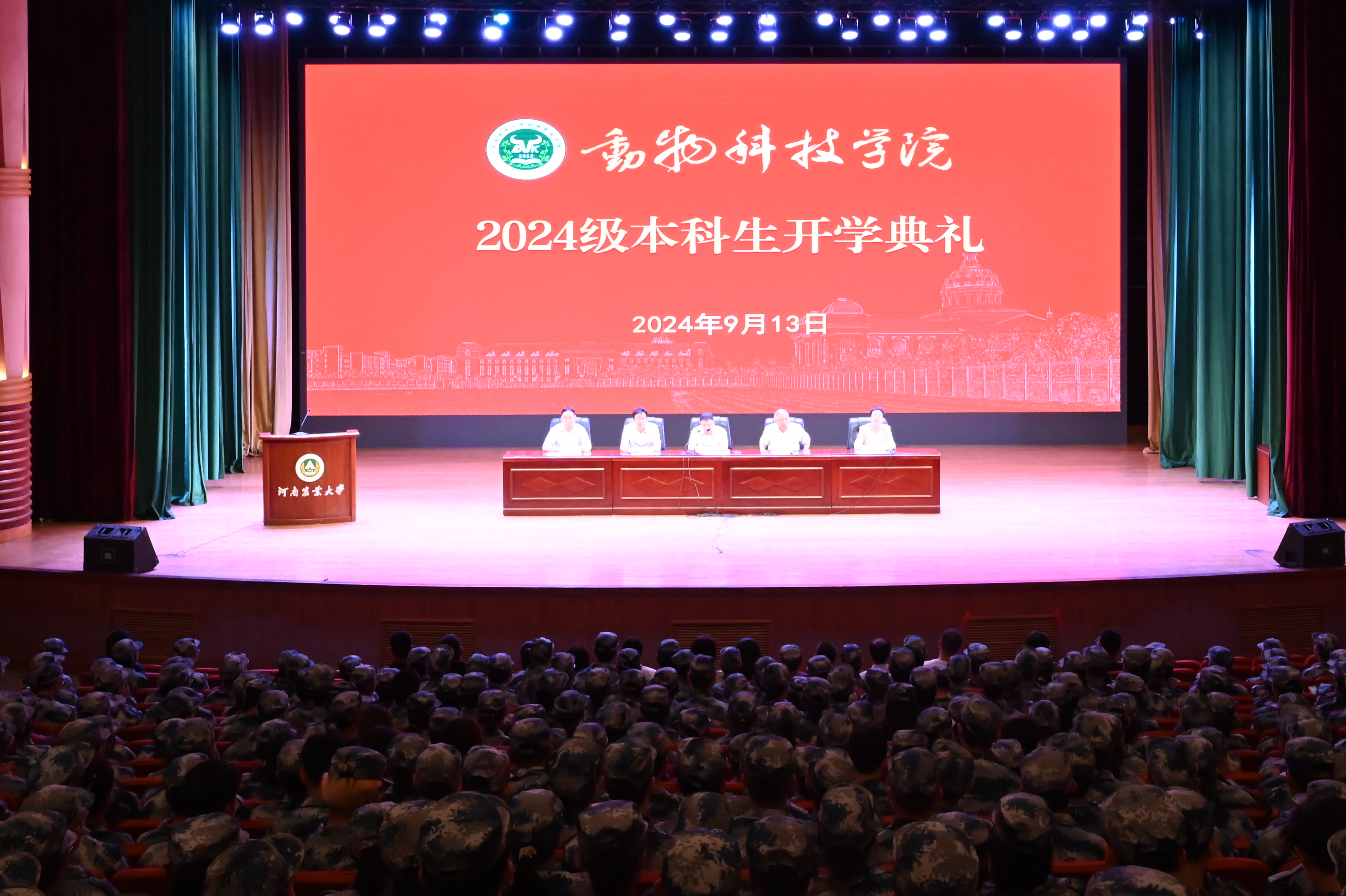 于文化路校区千人大礼堂隆重举行2024级本科生开学典礼暨秋季开学第一课,院党委书记余磊、院长李明、农大牧原联合产业研究院执行院长兼学院副院长付彤、党委副书记郭娟、副院长孙宇出席典礼,全体新生班主任、辅导员及新生参加活动。活动由郭娟主持。