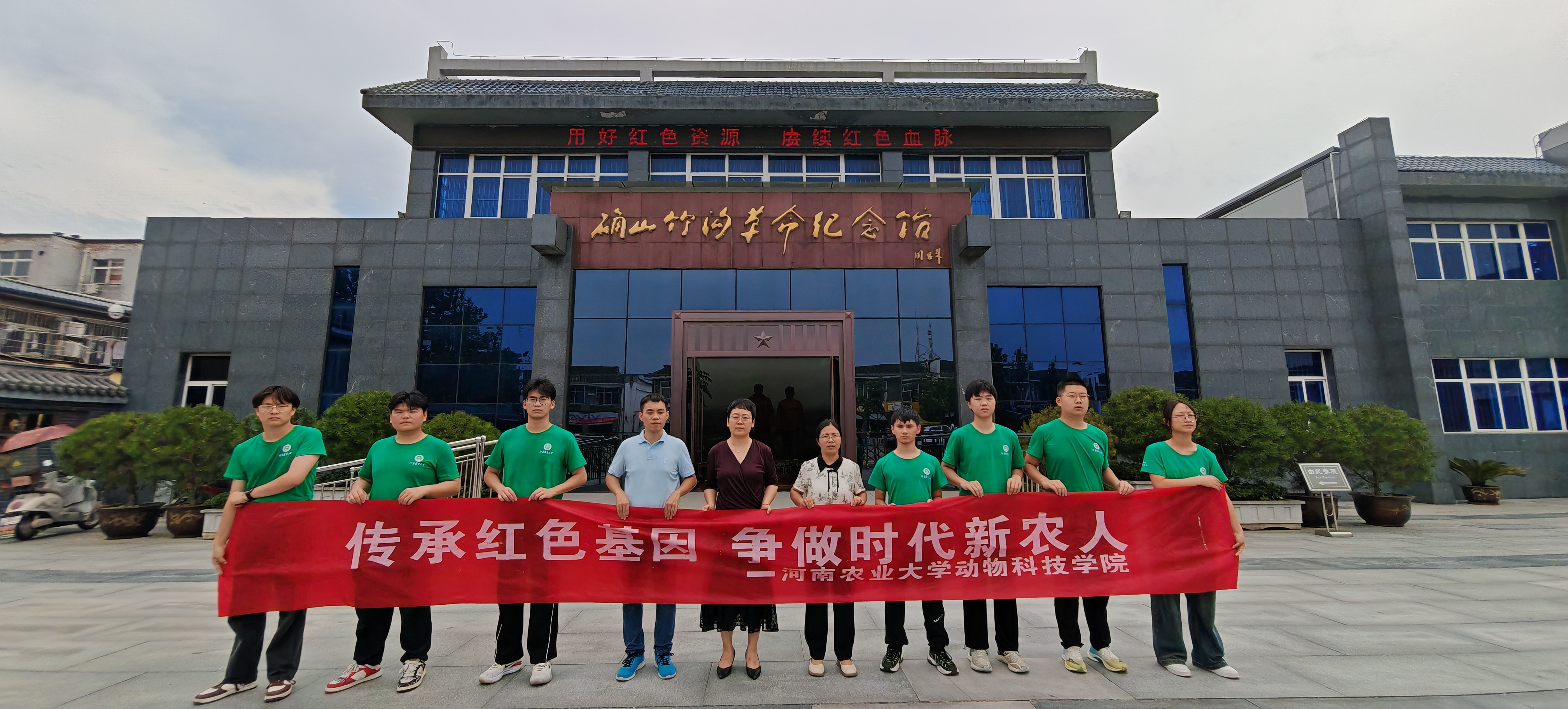 “舞动红色朗陵旗帜”文化推介实践团来到著名的红色圣地——驻马店市确山县,开启为期一周红色文化实践活动。在学院党委副书记郭娟、辅导员杨超然、团队指导老师刘凯珍带领下,一周的时间内,该团队先后奔赴河南省第一个县级农工革命政权——确山县临时治安委员会、确山起义纪念碑、抗日民族英雄杨靖宇将军故居和纪念馆、确山竹沟革命纪念馆、竹沟烈士陵园、确山红色记忆馆和康诚农业竹沟羊产业园进行参观学习。