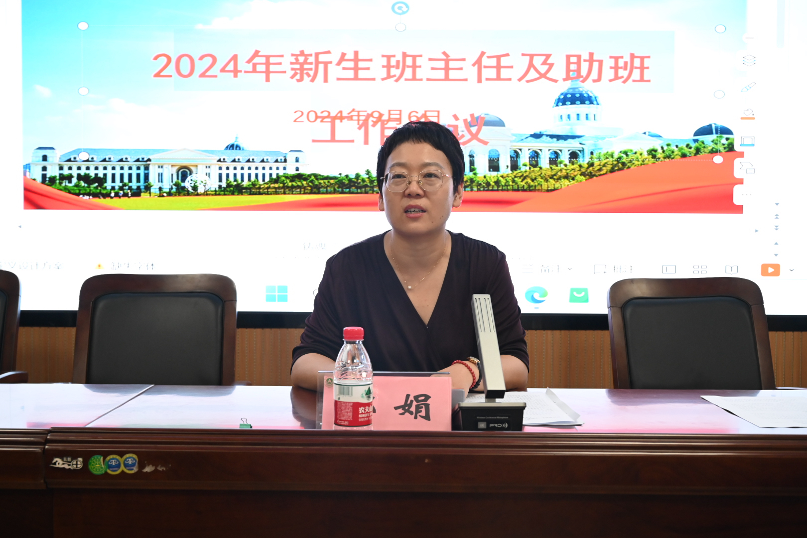 于第一实验室南321会议室召开2024级新生班主任及助班工作会议。院党委副书记郭娟、2024级新生班主任、全体辅导员及新生助班参加会议,会议由郭娟主持。