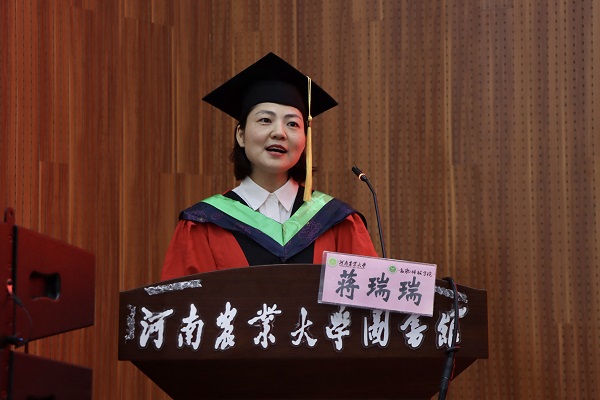 本科毕业生代表、2020级动科四班蔡钊发言,他用三个关键词“收获、担当、学习”回顾了自己四年的动科韶华,表示自己将不断传承动科精神,接续奋斗、勇往直前,做一名奋楫笃行、传递温暖、奉献祖国的新时代好青年。