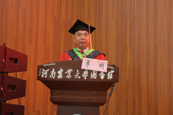 院长李明教授在典礼上致辞,他代表学院向2024届全体毕业生表示热烈祝贺,向辛勤教导的老师和家长表示衷心感谢。他指出,大家见证了国家的繁荣发展、见证了动科的行稳致远、见证了自身的能力提升,从懵懂无知的少年,成为了有思想、有追求、有担当的好青年。感谢大家在最美好的青春里对动科学院的“独家赞助”。再启新程之际,他寄语毕业生:一是不要让浮云遮蔽了你的双眼;二是不要让抱怨侵蚀了你的心灵;三是不要让算法占领了你的大脑;四是不要让芯片取代了你的灵魂。希望大家以“不畏浮云遮望眼”的高度和气度,以“乱云飞渡仍从容”的镇定与自信,奋力书写为中国式现代化挺膺担当的青春篇章。