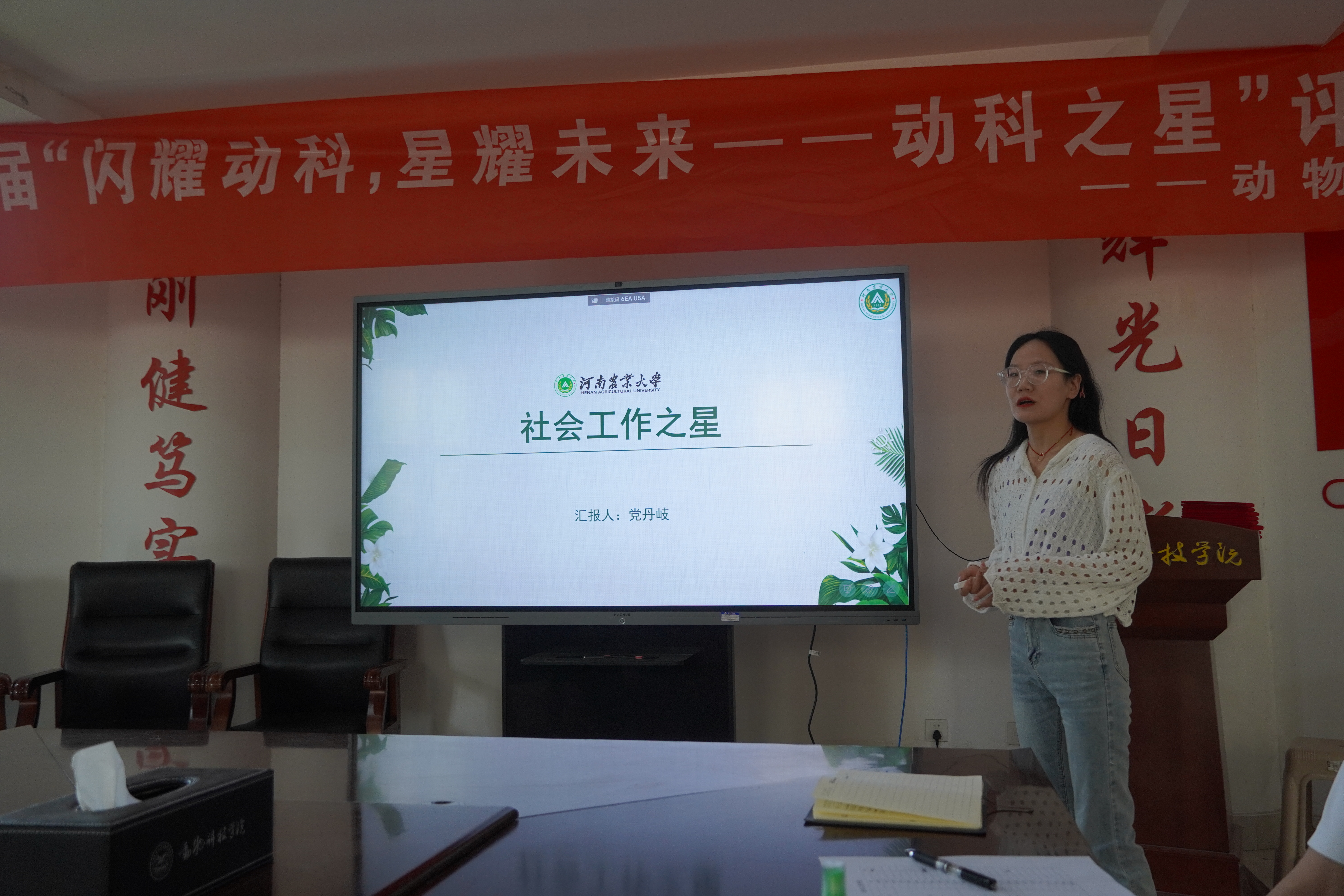 于5月12日下午在第一实验楼北330会议室举办“闪耀动科,星耀未来”——第四届“动科之星”优秀研究生评选活动。活动由研究生会办公室主任翟雯琪主持,研究生辅导员李品老师及研究生会成员担任评委。