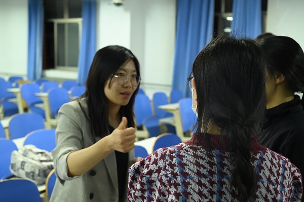 于光晴阐述了水产养殖专业研究方向、课程体系、培养目标和发展前景,她结合自身经历及往年毕业生就业情况分析当下水产养殖行业的整体形势,充分介绍专业的优势和特点,鼓励学生们积极选择。