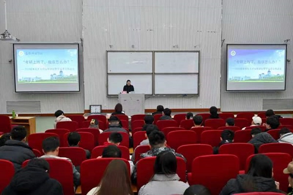 于龙子湖校区繁塔楼大教室六开展“‘研’途有你,全力以‘复’”——2024年考研复试指导交流会。邀请动物生产与智慧牧业系主任蒋瑞瑞教授、水产与经济动物养殖系教师于光晴到场为学生答疑解惑,全体考研学子参加会议,会议由组织员兼团委书记韩笑主持。