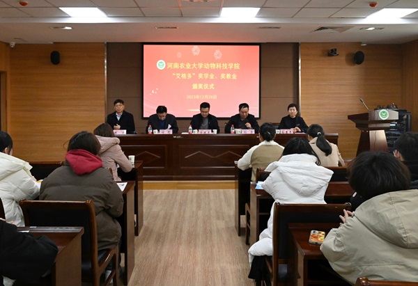 于龙子湖校区第一实验楼南321会议室举行2023年“艾格多”奖学金、奖教金颁奖仪式。河南艾格多科技集团总裁任振东与人资行政总监孙爱平、捷克论坛