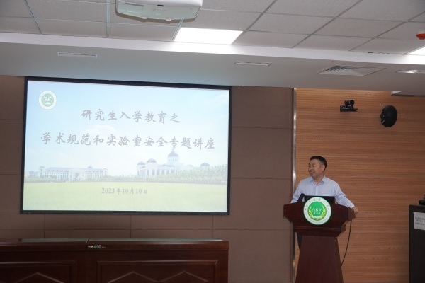 于10月10日晚在第一实验楼南321会议室举办研究生学术规范和实验室安全教育专题讲座,讲座由副院长孙宇主持,院教学督导王成章教授、动物医学院菅复春教授担任主讲,2023级全体研究生参加。