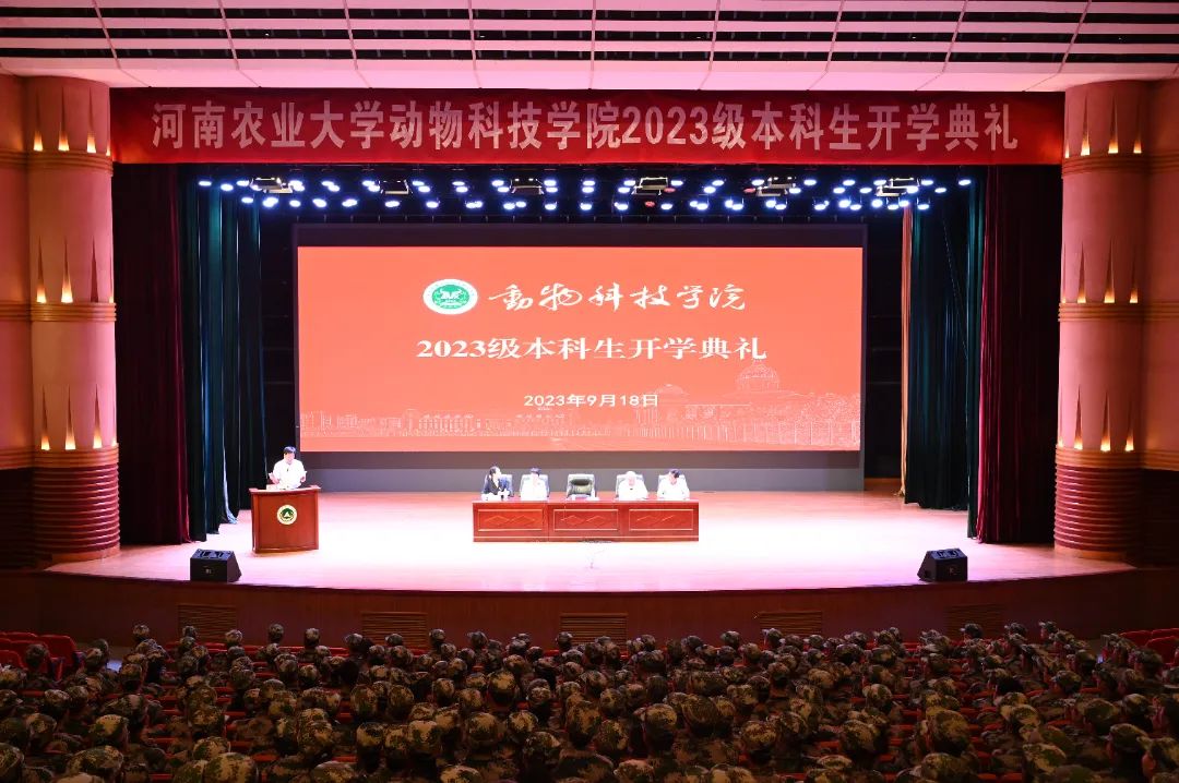2023级动物生产类10班马雨航作为新生代表发言,他以与动物结缘的经历为引,结合入校感受,倡导大家怀揣专业梦想,坚信专业选择,在学习中寻求真理,在兴趣中攫取快乐,在实践中赢得价值,雕刻属于自己、属于动科人的光荣印记。