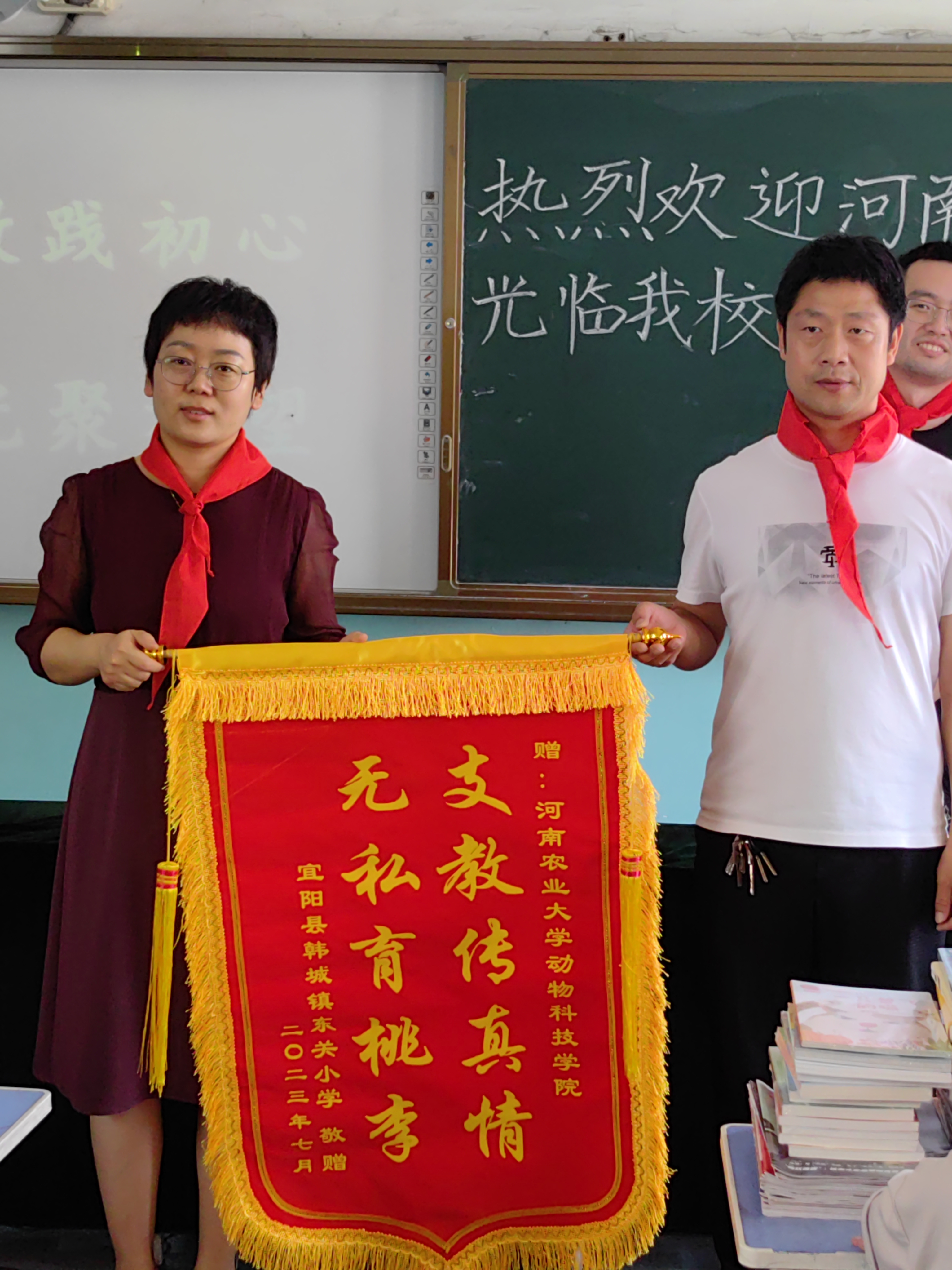 本次支教活动得到了学院的大力支持,院党委副书记郭娟、团队指导老师赵姝灿、兼职辅导员刘伯帅、李品一行赶赴东关小学进行爱心捐赠,慰问了支教学生,带来了远方的爱与关怀。也深入音乐课堂,与学生亲密互动,并寄语小朋友们努力学好文化知识,早日看到外面不一样的风光,以后走上更好更大的人生舞台。学生们兴致勃勃,给老师们系上了代表敬爱之意的红领巾。
