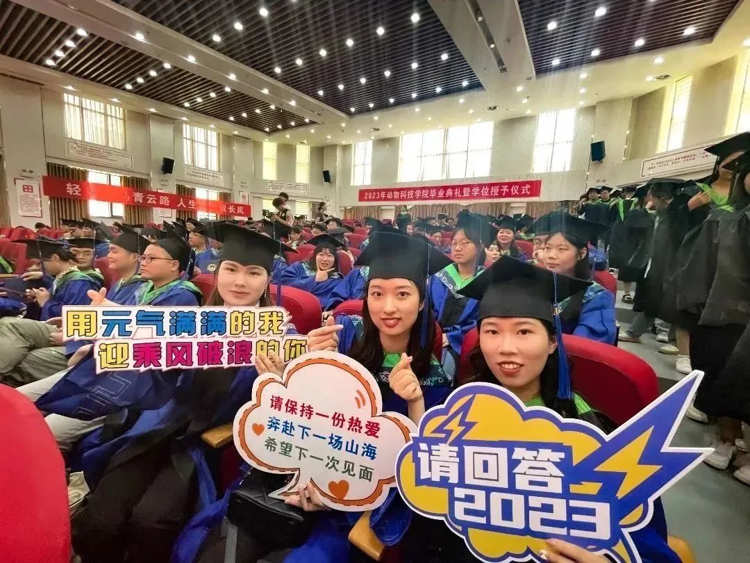 毕业生临别前再度高喊“动科精神”,一声动科精神,一生动科情分,今天,他们以毕业生身份离校,明天,他们以动科人身份走向未来,未来,动科学子们必将“动科精神”内化于心、外化于行动,将学到的知识作用在各个领域,在属于自己的青春赛道上跑出自己最好的成绩。