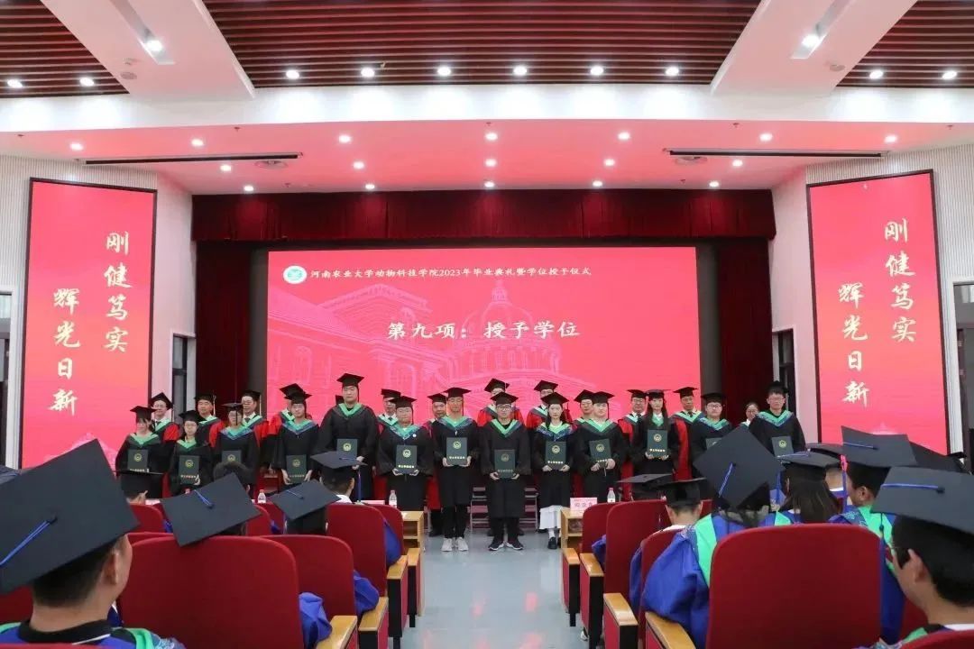 2023届学士学位授予决定。 现场为省、校、院级优秀毕业生颁发荣誉证书并合影留念。
