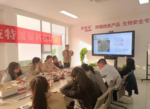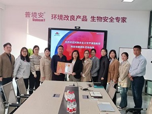 动物营养与饲料生物技术科技创新团队带头人尹清强教授、科技特派员金三俊等一行五人到河南省周口市商水县河南普爱饲料股份有限公司开展合作交流座谈会,河南普爱饲料股份有限公司董事长王潇、营养总监卢富山、研发部经理郑妨、配方总监陶妮及相关人员参加了座谈会。