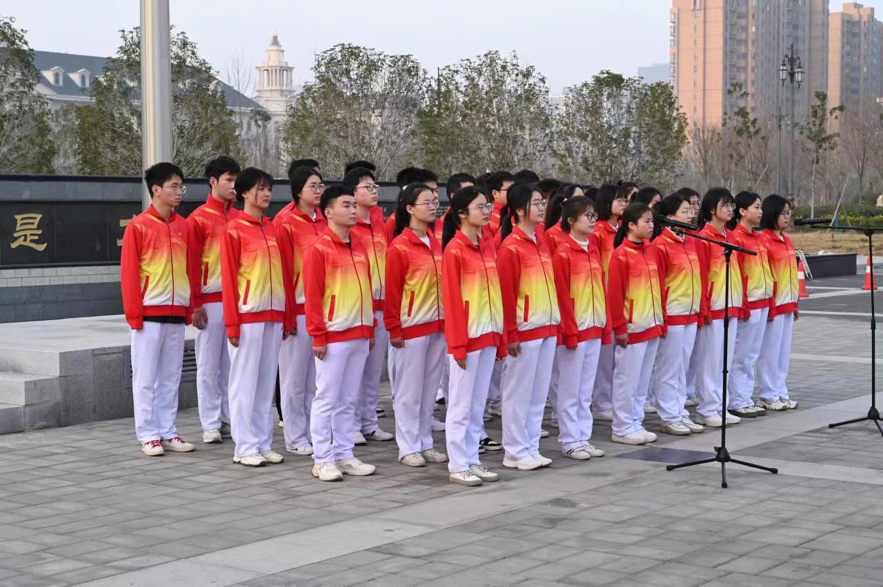 入党积极分子在国旗下演唱歌曲《向上的光》