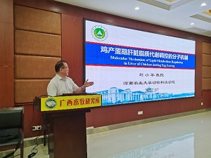 刘小军教授、李转见副教授受邀作学术报告,两位老师分别就《鸡产蛋期肝脏脂质代谢调控机制研究》和《鸡重要性状分子标记开发及其在育种中的应用》两方面内容进行了汇报。学术报告结束后,广西畜牧研究所所长吴柱月、党委书记周岳飞、副所长韦锦益、易显凤等陪同康相涛教授团队参观动物营养实验室、家禽实验室、养猪实验室和牧草实验室。随后双方进行座谈交流,畜牧所所长吴柱月介绍了研究所发展概况,他表示研究所现有职工总人数较多,但是副高职称和正高职称人员比例低,畜牧所具备完善的实验室和配套的科研基地,但是缺乏研究生和实习生,很多研究工作难以开展,希望能和高校合作,形成联动发展。康相涛副校长和田亚东副院长分别介绍了捷克论坛