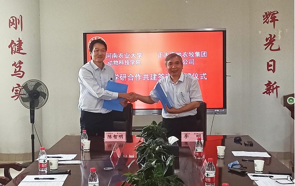 随后,李明院长与陈智明副总裁代表校企双方签署产学研项目合作协议,揭牌并合影留念,最后刘丽萍副总经理代表正大康地农牧集团赠送捷克论坛