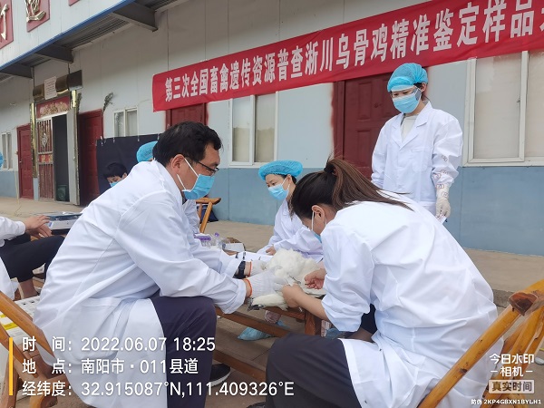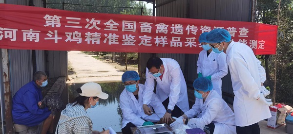 副院长、全国鸡遗传资源普查专家田亚东教授,带领团队成员孙桂荣教授、李文婷副教授、张彦华老师及5位研究生,赴开封市祥符区河南省长兴农牧有限公司、南阳市淅川县河南兴盛源牧业有限公司和三门峡市卢氏县优鲜道生态农业有限公司开展河南斗鸡、淅川乌骨鸡和卢氏鸡精准鉴定、样品采集和性能测定工作。河南省畜牧技术推广总站、河南牧业经济学院、河南省农业科学院畜牧兽医研究所及所在市县农业农村局畜牧技术推广站相关专家和负责人共赴现场。