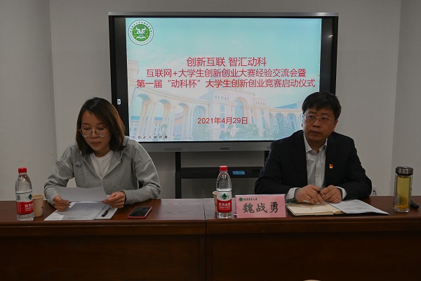 在龙子湖校区第一实验楼北530举办“互联网+”大学生创新创业大赛经验交流会暨第一届“动科杯”大学生创新创业竞赛启动仪式,邀请了动物医学院副院长魏战勇教授为主讲嘉宾。院党委组织员兼团委书记韩笑、团委副书记黄璞、19级及20级学生代表共50余人参加会议,会议由韩笑主持。