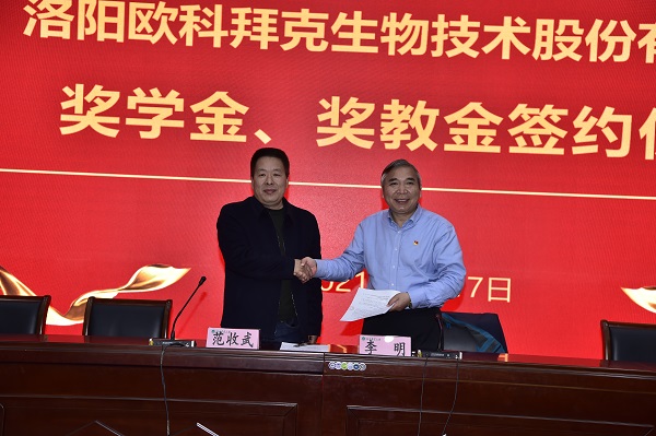 院长李明和洛阳欧科拜克生物技术股份有限公司总经理范收武签约