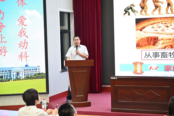 在教学楼大教室1举办2020级新生专业教育,动物生产与系统工程系教授田亚东以“爱学校 爱学院 爱专业”为主题带来一场生动的专业教育,院长李明、党委副书记郭娟、团委副书记韩笑、2020级班主任代表及全体新生参加活动,活动由韩笑主持。