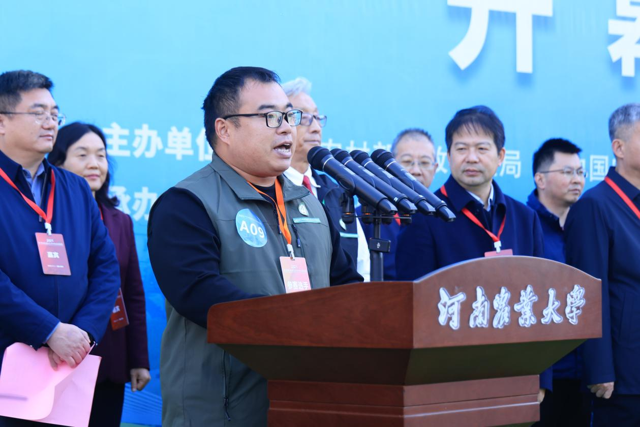 北京林业大学卢欣石教授、河南合博草业有限公司技术总监韩康康作为裁判长和竞赛选手代表分别发言。