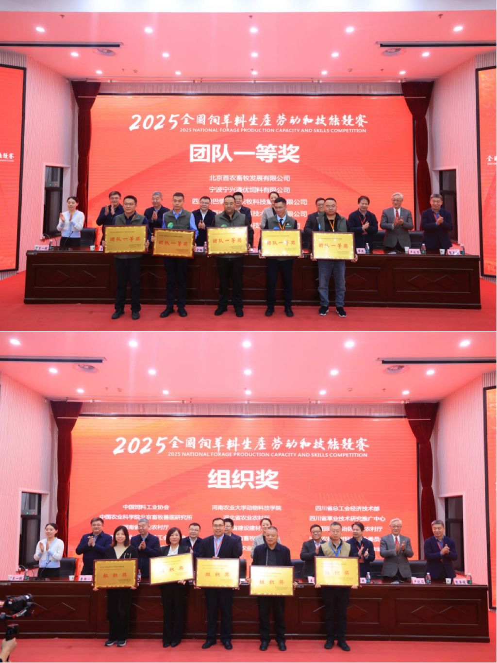 魏宏阳主持闭幕式。姜晓捷、辛国昌分别进行总结讲话,对获奖单位和个人表示祝贺,并指出,这是一次高水平、高质量的技能盛会,是一个交流心得、锤炼本领、赛出风采的宝贵平台。当前,我国畜牧业正处在转型升级的关键时期,保障优质饲草料供给,关乎国家粮食安全和乡村振兴战略大局,期望参赛选手以此次竞赛为新的起点,珍惜荣誉、苦练内功、示范带动,做知识型、技能型、创新型的劳动者,为筑牢我国畜牧业高质量发展的根基再立新功。