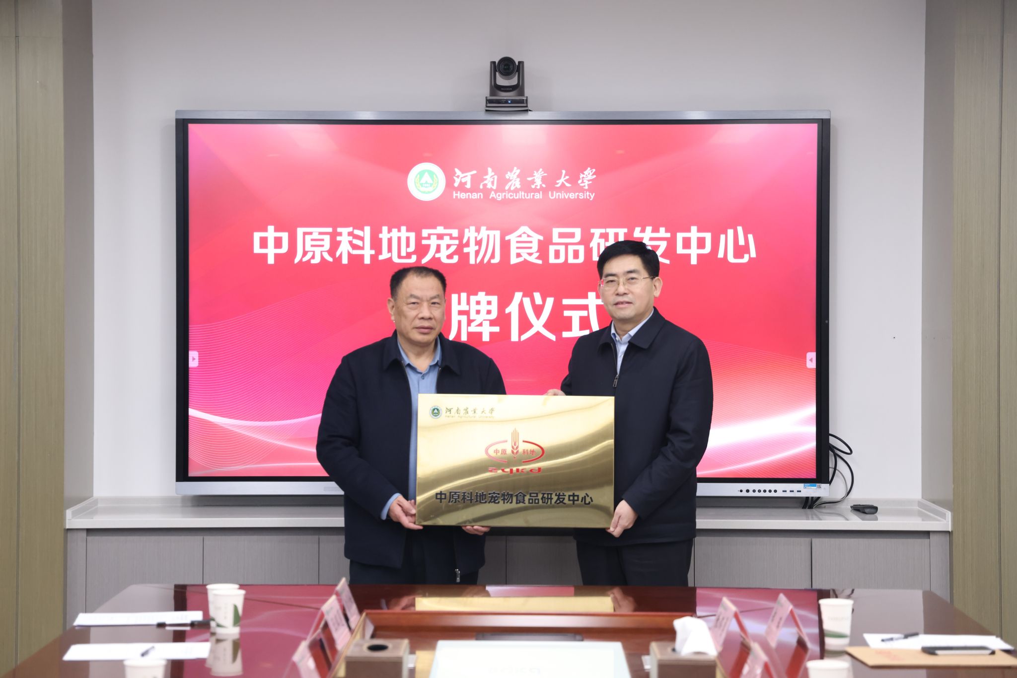 中原科地宠物食品研发中心”授牌仪式在龙子湖校区举行。河南中原科地生物技术有限公司董事长原文浩、总经理张志良,捷克论坛
