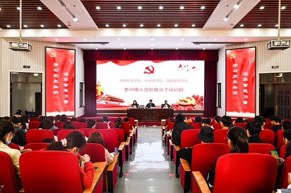 联合外国语学院、国际教育学院于龙子湖校区教学楼大教室一共同举办了第49期入党积极分子培训班,共319名入党积极分子参加培训。