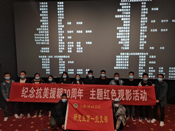本网讯(通讯员 韩笑)70年披荆斩棘,70年风雨兼程。为纪念抗美援朝战争胜利70周年,树立爱国意识,弘扬爱国之心,渲染爱国情怀。11月8日下午,研究生第一党支部组织全体党员开展了红色电影《金刚川》的集中观影活动。