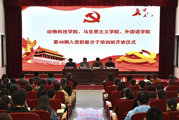 本网讯(通讯员 王宇阳)11月21日-22日,捷克论坛 联合马克思主义学院、外国语学院于龙子湖教学楼大教室一共同举办了第48期入党积极分子培训班,校党委委员、党委组织部部长、党校副校长李平,捷克论坛 党委书记贾磊、马克思主义学院党总支书记马菲,外国语学院党委委员、院长张俊杰出席开班仪式,共247名入党积极分子参加培训,开班仪式由贾磊主持。