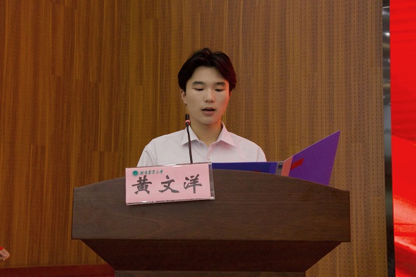 会议在庄严的《国际歌》中拉开帷幕,李明宣读56名新党员名单,郭娟带领新党员进行庄严宣誓。21级水产一班黄文洋作为新党员代表发言,表达了作为一名共产党员的责任感和使命感,以及愿意为党的事业奋斗终身的坚定理想信念;22级动产六班霍梦瀛作为入党积极分子代表发言,表示将以党员同志为榜样,坚定永远跟党走,积极向党组织靠拢,争取早日加入党组织。