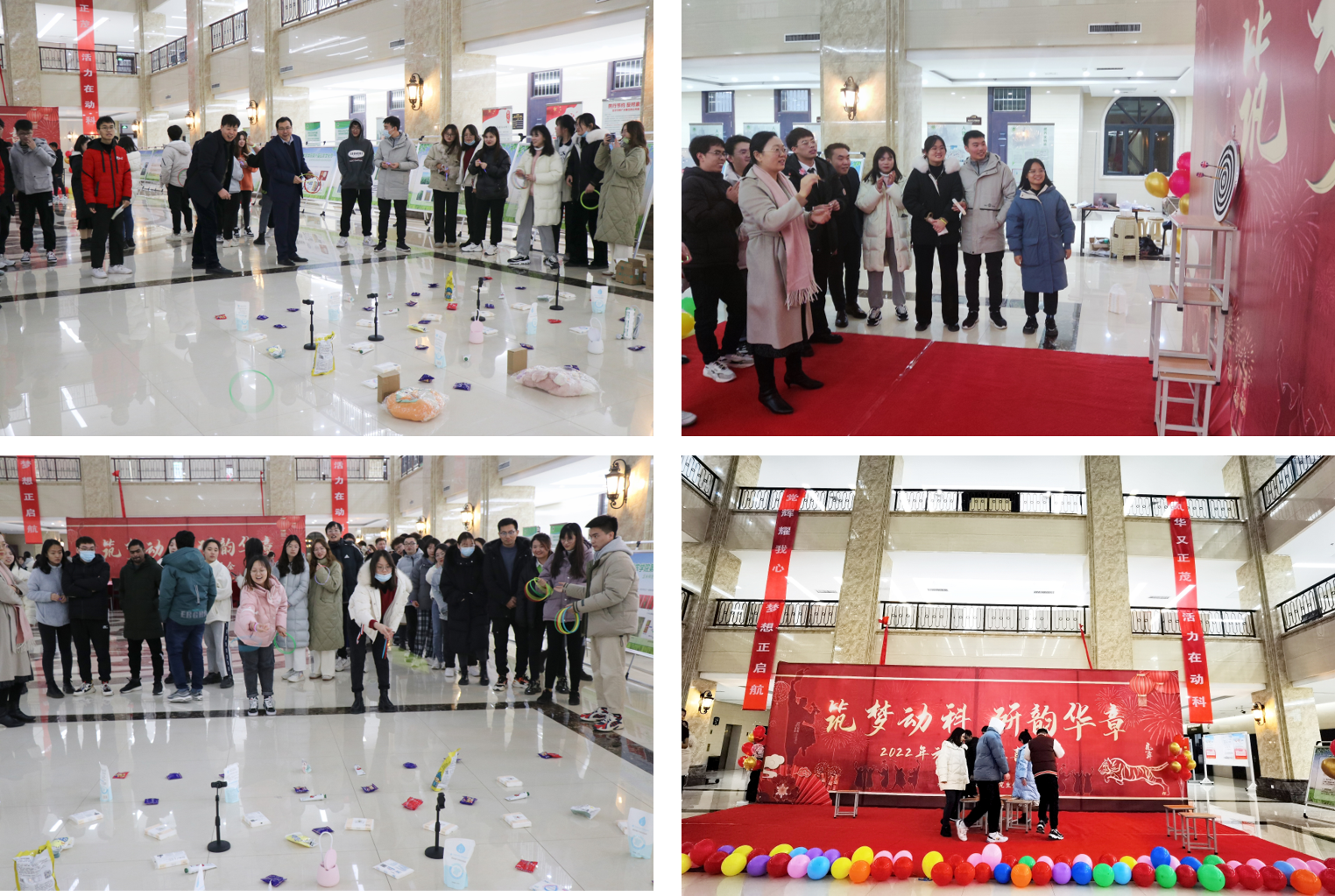 在龙子湖校区第一实验楼一楼大厅举办了“筑梦动科,研韵华章”2022年元旦研究生喜乐会。院党委书记贾磊、院长李明、院党委副书记郭娟、副院长田亚东、院团委书记韩笑、研究生辅导员张彦华和全体研究生参加,共同喜迎元旦佳节。