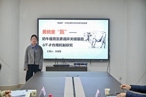 于龙子湖校区第一实验楼南501会议室举办2025年“挑战杯”大学生课外学术科技作品竞赛决赛。院党委副书记郭娟、副院长孙宇、副院长李转见、动物生产与智慧牧业系教授王林枫,动物遗传育种与繁殖系教授韩瑞丽、动物遗传育种与繁殖科学系副教授李红、辅导员赵姝灿、杨超然担任评委,15支学生队伍到场答辩。