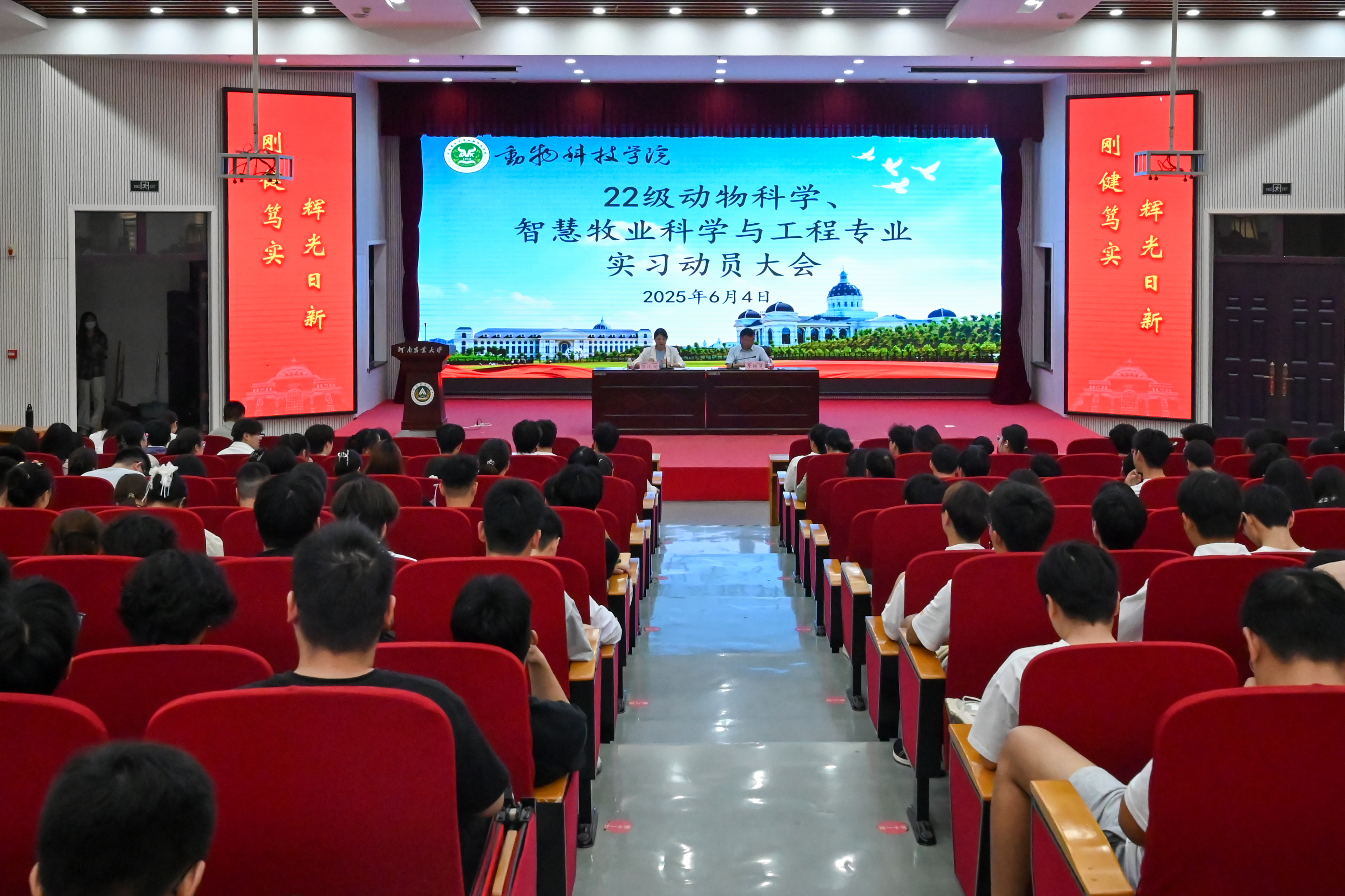于龙子湖校区繁塔楼大教室一举行2022级本科生实习动员大会。副院长李转见、农大牧原联合产业研究院副院长蒋瑞瑞,实习组秘书刘伯帅、司雪萌、李品以及辅导员赵姝灿出席会议,22级全体同学参加,大会由赵姝灿主持。