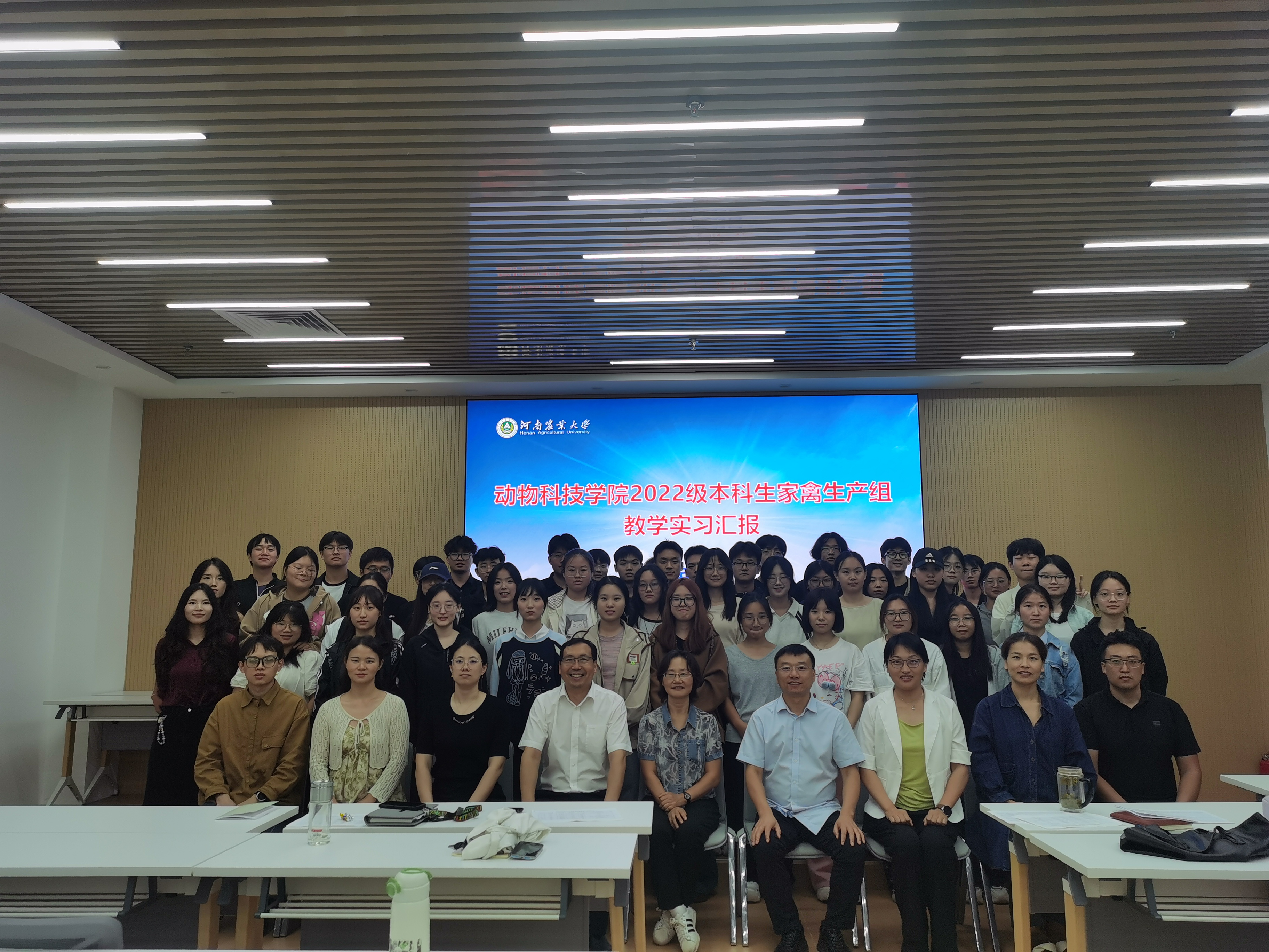 本网讯(通讯员 郭玉龙 )金秋时节结硕果,实践育人促成长。2022级本科生家禽生产组已圆满完成为期2个月的教学实习任务,学生于8月中旬从各实习企业平安返校。为系统梳理实习成果、总结实践经验,9月4日,捷克论坛 召开2025年“2022级本科生家禽生产组教学实习总结汇报会”,捷克论坛 田亚东教授、黄艳群教授、李转见教授、李文婷教授、李红副教授、李东华副教授、张彦华副教授及金炜炜、郭玉龙等实习指导老师,与2022级家禽生产组全体本科生共同参会。