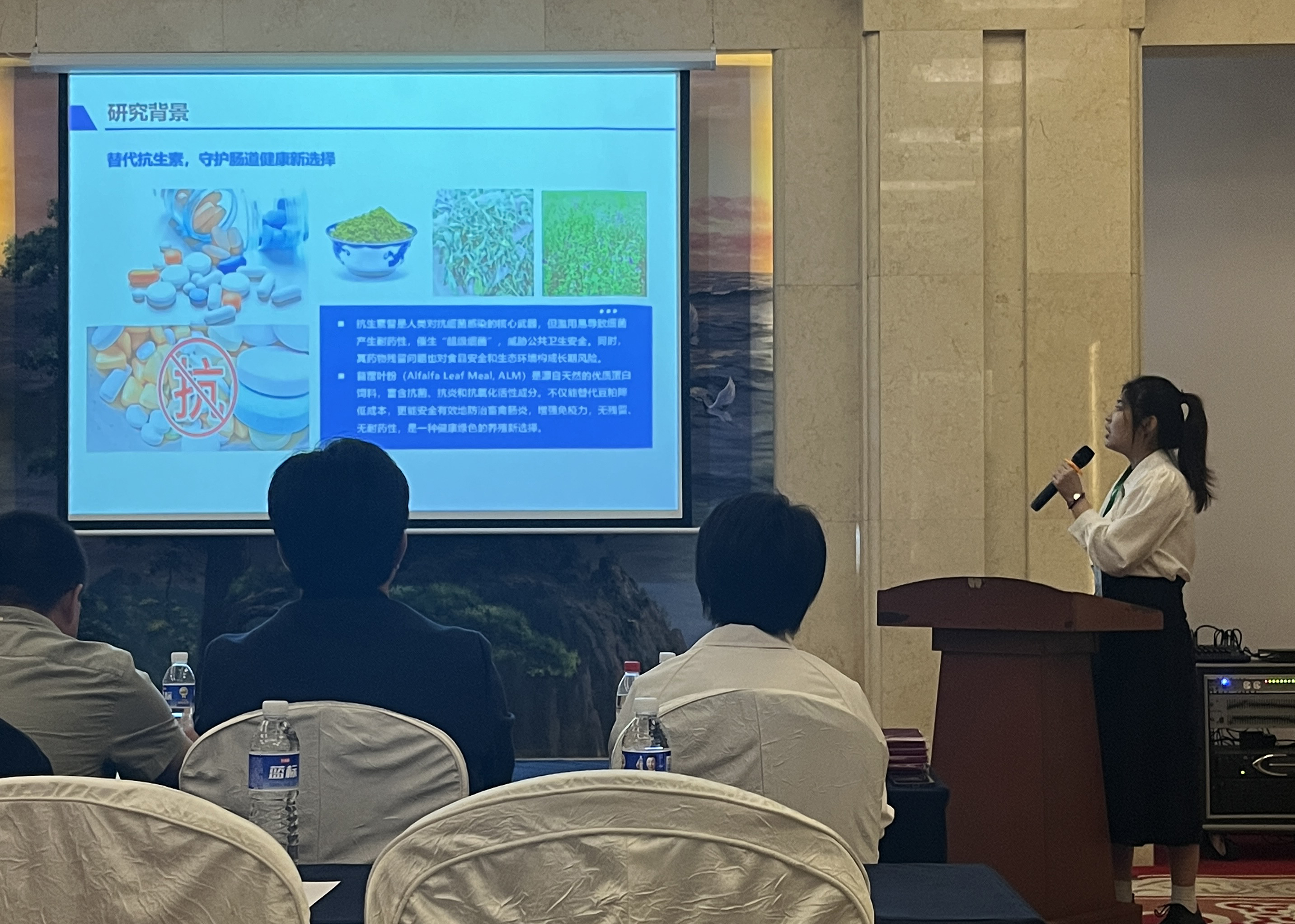 史莹华教授指导的博士研究生刘孟琦、程佳雯,在大会博士研究生论坛分别作专题报告。刘孟琦以“苜蓿皂苷驱动的 Lactobacillus intestinalis 通过胆汁酸 - FXR-Wnt 信号轴增强自然衰老小鼠肠道干性”为主题,程佳雯聚焦 “不同比例苜蓿叶粉日粮对断奶仔兔生长性能、炎症反应的影响及机制研究”。两人的报告分享了优质饲草在畜牧养殖中的应用效果,还探讨了优质饲草功能性提取物在抗生素替代、人特医食品与保健品领域的应用前景,为饲草及深加工功能性产品创新提供新思路。其中,刘孟琦的报告荣获 “博士研究生学术交流报告C类奖”。
