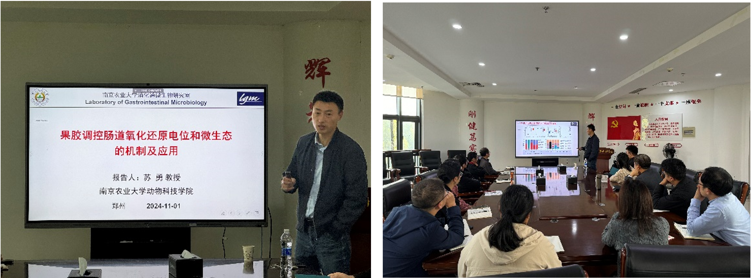 在本次学术交流中,苏勇教授以《果胶调控肠道氧化还原电位和微生态的机制及应用》为题,首先对其团队的研究方向和基本情况进行简要介绍。其次他围绕果胶对猪肠道内环境、微生态结构和功能的影响及其对肠道氧化还原电位和微生态的调控作用等内容进行详细讲解,并分享了他们团队在果胶调控大鼠肠道氧化还原电位的研究成果,进一步表明其团队未来的研究方向及目标,并对相关学术问题进行解答。最后,苏勇教授分享了国家自然科学基金申请书的写作技巧及个人经验,为捷克论坛