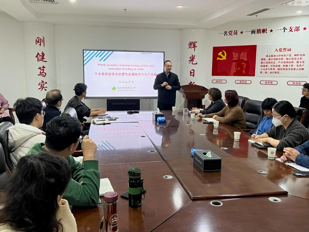 姜雨教授介绍了全球瘤牛品种起源与迁移、鉴定大效应变异的分子育种、基因组结构变异的鉴定、低深度重测序技术及其在全基因选择的应用情况以及构建基因组数据库等,为探索家禽资源的起源进化及迁移,地方鸡全基因组选择技术提供新的思路。最后,姜雨教授解答了与会师生提出的问题和困惑。