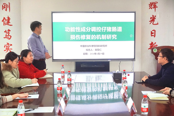 师生与蒋老师进行了学术讨论,受益匪浅。最后,蒋瑞瑞教授对研究员蒋显仁带来的精彩报告表示衷心感谢。此次学术交流为有效缓解仔猪断奶应激引发肠道损伤,实现减抗限锌提供了新思路,有效助力我国生猪产业高质量发展,也为加强双方未来深入合作奠定了良好的基础。
