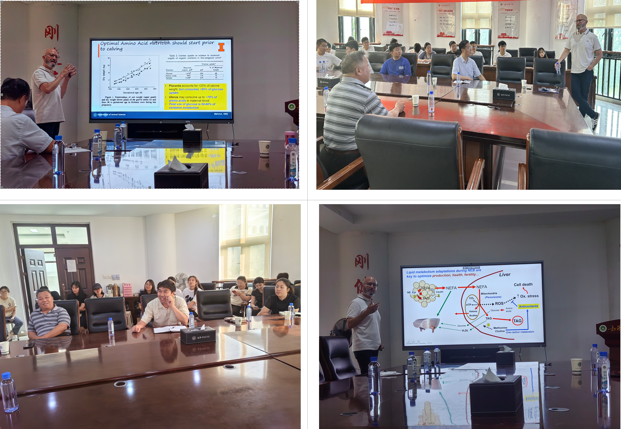 整个报告会过程中,Juan J. Loor教授用生动的语言、丰富的案例,从营养和管理方面讲述如何减少奶牛产犊带来的生理影响,报告内容丰富,持续近三小时,师生们意犹未尽,与会师生积极踊跃提问,与Juan J. Loor教授进行了深入的交流和互动,现场气氛热烈。