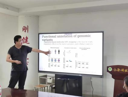 报告会上,房灵昭教授教授以《FarmGTEx for advanced agriculture and biomedicine》为题,详细的介绍了FarmGTEx的总体设计,专注于农业动物(比如牛、猪等)的基因组学和表达数据。利用统计遗传学和生物信息学分析不同家养动物组织中的基因表达模式,以及这些模式如何与个体基因型相关联,对于理解畜牧业动物基因表达如何影响其性状和健康具有重要意义。