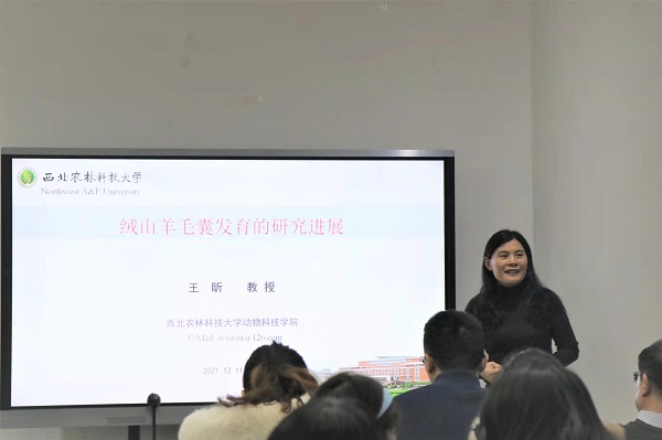 王昕教授以《绒山羊毛囊发育的研究进展》为题,通过简单介绍陕北白绒山羊,深入讲解了绒山羊毛囊发生发育中lncRNA的筛选与鉴定、绒山羊毛囊发生过程单细胞转录图谱的构建、褪黑素影响绒山羊HFSCs增殖与分化、绒山羊毛囊发生发育关键信号通路和基因的筛选和鉴定、Hoxc13对毛发角蛋白的调控及其自身的调控机制、DNA甲基化对绒山羊毛囊分化的调控六项研究结果,为捷克论坛