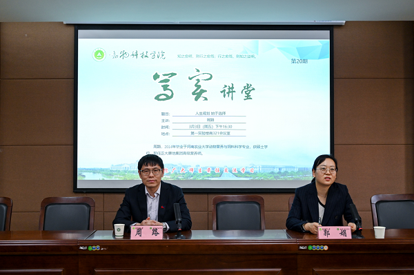 于龙子湖校区第一实验楼南321会议室举办第20期笃实讲堂。特邀优秀校友、正大康地集团高级营养师周路作为主讲嘉宾。报告会由院党委副书记郭娟主持。