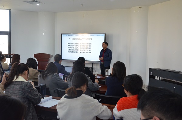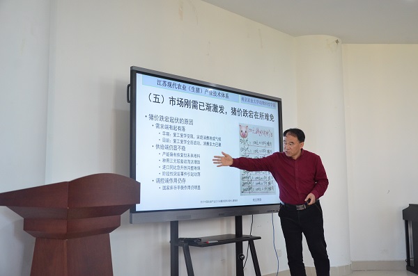 黄瑞华以《关于中国生猪产业几个问题的思考》为题,从当前养猪生产形势、如何看待我国生猪产业安全问题、我国究竟需要多少猪与多少猪肉、生物安全究竟怎么理解以及应做到什么程度等八个方面进行详细阐述,并向同学们介绍了如何预判我国生猪产业未来的发展方向。