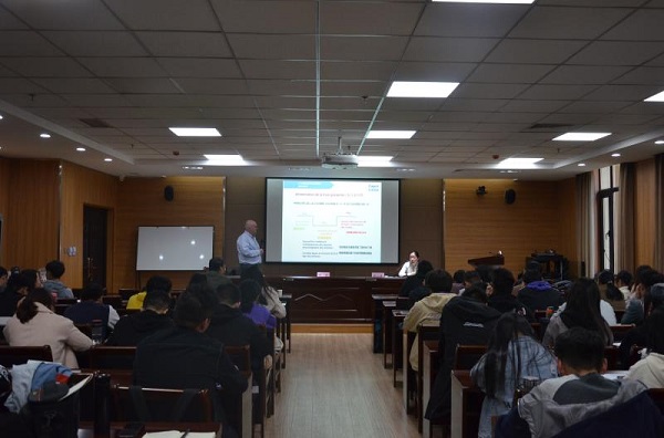 在第一实验楼南321会议室举办了第六期“笃实讲堂”,邀请科普利信中国技术总监Arnaud Hercé为主讲嘉宾,2020级全体硕士研究生参加,讲堂由院党委副书记郭娟主持。