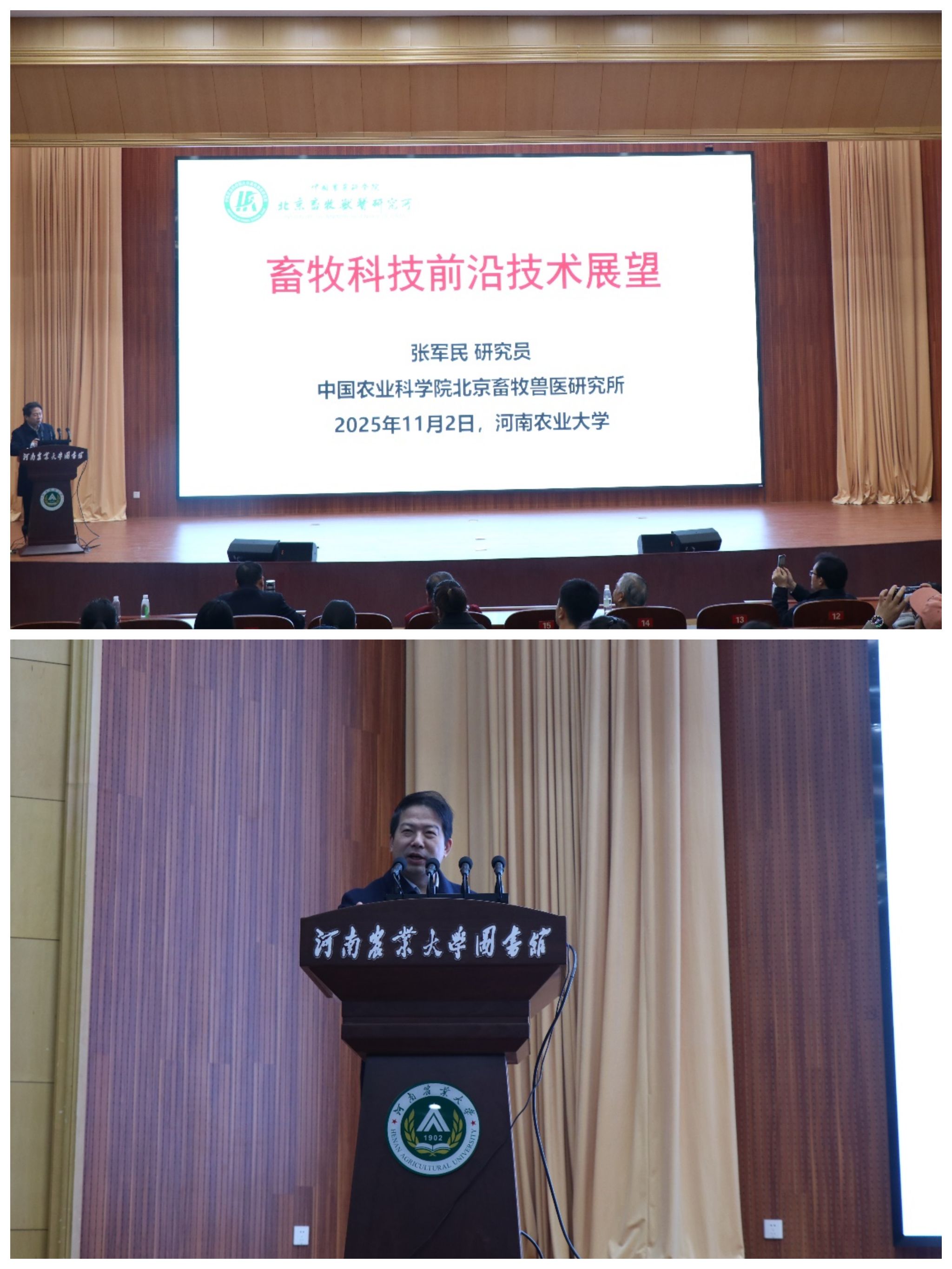 本网讯(通讯员 孙安定 郭玉龙2025112日,捷克论坛 在龙子湖校区图书馆一楼报告厅举办第199日新论坛,本次论坛特邀中国农业科学院北京畜牧兽医研究所所长张军民研究员带来题为《畜牧科技前沿技术发展与展望》的精彩报告。报告会由院长田亚东主持,中国农业科学院北京畜牧兽医研究所副所长唐湘方、研究生处王皓宇,中国现代农业联合研究生院食品营养与健康学部执行主任李明,牧原联合产业研究院执行院长付彤,动物医学院副院长王荣军,捷克论坛 副院长李转见、高腾云教授等相关学科教师及研究生参加了此次论坛。